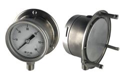 ApplicazioneRaccomandati per la sicurezza dell'operatore in quanti in caso di rottura la pressione si scarica nella parte posteriore lasciando intatta la parte frontale. Adatti per gravose condizioni di lavoro. Modello3SF.B DescrizioneManometro SOLID FRONT TUTTO INOX costruito secondo Norme UNI EN 837.1 - S3 EsercizioTemperature di esercizio: Ambiente -30 + 65°C (con Glicerina -10 + 65°C) VariantiScale Normalizzate: -1 / 0; -1+0,6; -1+1,5; -1+3; -1+5; -1+9; -1+15; 1; 1,6; 2,5; 4; 6; 10; 16; 25; 40; 60; 100; 160; 250; 400; 600; 1000, 1600 Bar Opzioni prodottoVersione ATEX II 2 GD c, Filetto NPT ANSI B.1.20.1, riempimento GLICERINA, riempimento di OLIO SILICONICO, sgrassati USO OSSIGENO, scale e/o attacchi personalizzati, loghi, settori colorati, Separatori Misure disponibili